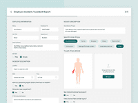 Today we present you the screen where a construction company can select his projects and can get an overview of all the injuries that are reported. On the top bar he can see the most important statistics and the user can use advanced filters to narrow down the data. On the left you see an interactive illustration of the most important filter - the body parts. A rollover gives quickly the data of the injuries on that part and a click on the body part will activate the particular filter.